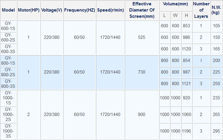 (Capacity is estimated based on applying mesh#60 for flour powder, it may vary from types, shapes, grains, gravity, temperature, humidity, mesh and other factors.)